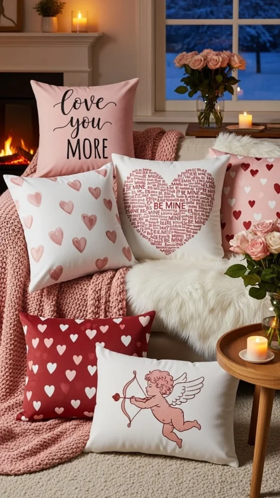 9. Cozy Throw Pillows with Love Prints
